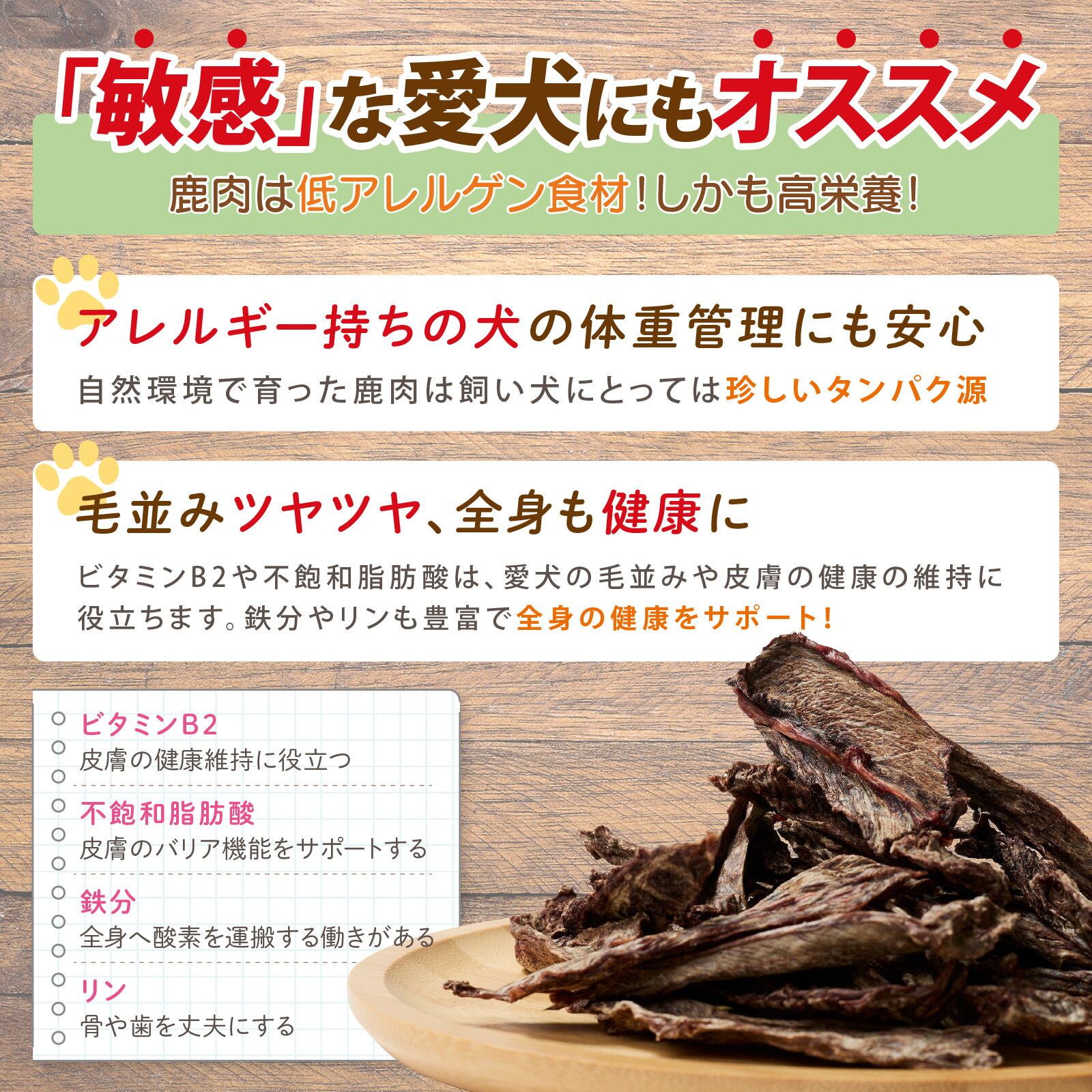 愛犬に嬉しい、贅沢なご褒美を。無添加鹿肉ジャーキー